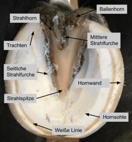 In manchen Fällen kann ein Hufbeschlag (Eisen, Alu, Kunststoff) notwendig sein, um geschädigte Strukturen zu entlasten oder eine notwendige Korrektur zu ermöglichen.