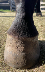 Barcley ein 14 jähriger Hannoveraner wurde erfolgreich von mir von Hufeisen auf Barhuf umgestellt. Dieses Bild ist 3 Wochen nach einer Bearbeitung 2024 aufgenommen worden. Am Anfang war es sicherlich nicht einfach, jedoch kann man jetzt von einem glücklichen Pferd sprechen, das fühlt, was am Boden passiert. Die Hufe sind so, wie sie sein sollen. Wir Menschen wollen auch einen Schuh, der perfekt passt, und der Huf des Pferdes ist der Schuh des Menschen.